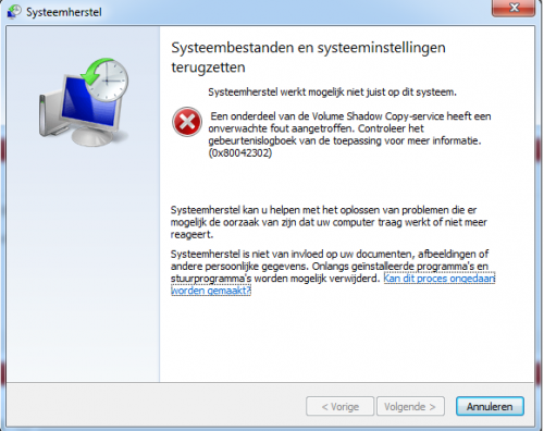System Restore staat er niet tussen wel Volume Shadow Copy Service die staat op automatisch daarna heb ik hem opnieuw opgestart maar hij geeft nog hetzelfde probleem -