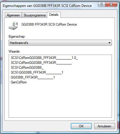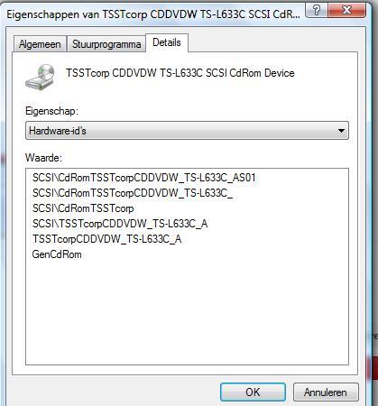 Goede avond Dank je voor te antwoorden maar helaas is het probleem nog steeds niet opgelost. Is het normaal dat ondanks ik maar 1 DVD/CDrom lade heb in de laptop dat hij wel 2 dvd stations aangeeft?? DVD rw station E en DVD station F?? ook al probeer ik de installatie ongedaan te maken ze komen alle 2 steeds terug Gewone muziek CD's speelt hij wel af. snap er niets van :-((