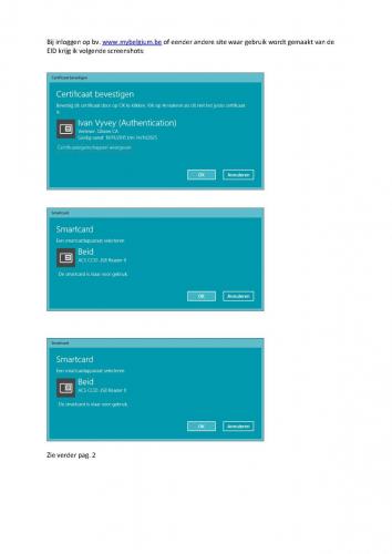 Is vrees dat vorige mail niet volledig was. Het inloggen gebeurt met de kaartlezer voor de elektronische identiteitskaart. Zie bijgevoegde pdf voor de achtereenvolgende melding na het inloggen. Met dank Ivan