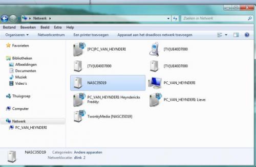 Hello stegi - het is al nacht maar ik laat u weten dat het me gelukt is -- ik kan alles kopieren naar de Nas met verkenner het was een kwestie van paswoorden denk ik :-( Anyway -- hier een screen van wat ik zie als ik de computer open ! Van daaruit kan ik alles kopieren !! Ik heb nog een vraagje maar dat is voor morgen , good night and thanks mate Rob .