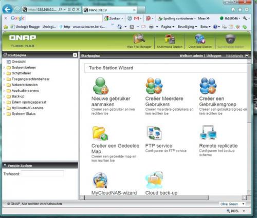 Hello Stegi -- vandaag alles overgekopieerd van laptop naar Nas --alles verliep naar wens , bedankt man ! Ik heb het automatisch IP adres gehouden , het vreemde is als ik een vast IP adres invoer zoals uitgelegd in uw bericht 14 , dan krijg ik geen verbinding meer , vreemd maar het lukt me niet ! Is een vast IP beter dan een automatisch ? En weet u voor wat het Media station dient ? en hoe ge daar op inlogd ? ik raak daar met geen enkel passwoord op ? Zie afbeelding : Mijn netwerkinst. zijn nu zo : Ps- wat zou ik allemaal aanklikken bij schijfbeheer -systeembeheer enz enz ? Bedankt nog eens Stegi . Rob.