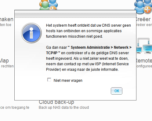 Hello, het lijkt gelukt te zijn -- maar heb de conf. wel gedaan vanuit QnapFinder , want vanop de nas zelf lukte het niet ? hij bleef zeggen ( effe geduld ! )maar na een 15 min. was mijn geduld op en heb ik het vanop Qnapfinder gedaan , met succes . zie afbeelding : Zo ik denk dat alles nu in orde is , nog een goed paswoord verzinnen en Qnap Netbak Replicator installeren en alles is ok voor zolang het duurt Ps : moet ik of jullie mijn IP adres hier op de site verwijderen ? Bedankt Pro Mind , gij ook Stegi Nog tips ?? Rob.