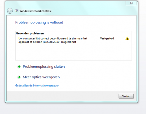 Ok Stegi , hier de screens . Maar nu krijg ik ook al een vermelding ,deze ! " Het systeem heeft ontdekt dat uw DNS server geen hosts kan ontbinden en sommige applicaties functioneren misschien niet goed. " Moet ik ook nog iets invullen bij primaire DNS server en secondaire ? Problemen he ,