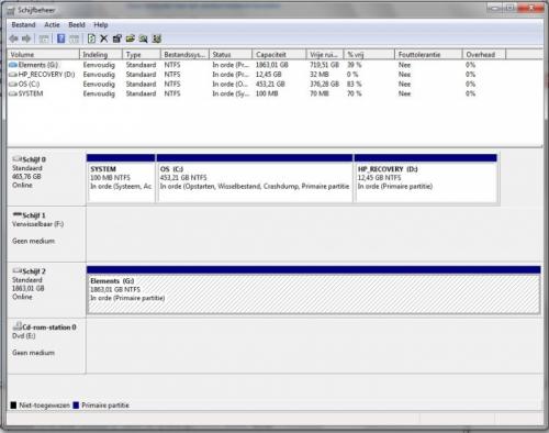 Geacht forum, In 2010 heb ik mijn huidige computer, een HP-Pavilion Slimline – model s5620nl , aangeschaft. Tot ca. 2 weken gelden werd er altijd automatisch door windows 7 (64bits) een back-up naar een externe harde schijf geschreven. Toen kwam er evenwel opeens de melding : Back-up is mislukt. Bij het aanklikken van meer informatie volgt nog de mededeling: “Er is geen back-up gemaakt omdat een van de essentiële volumes onvoldoende schijfruimte heeft. Maak ruimte vrij door overbodige bestanden te verwijderen en probeer het opnieuw.” Voor mij was dit niet goed te begrijpen omdat de vrije ruimte op de externe harde schijf ruimschoots die van de harde schijf overtrof. Totale ruimte harde schijf: 453 GB en beschikbare ruimte op dat moment 130 GB terwijl de beschikbare ruimte op de externe harde schijf toen 1 TB was. Op zoek naar een oplossing heb ik de oude back-up op de externe harde schijf verwijderd. Achteraf weet ik dat ik dat niet had moeten doen. Daarnaast heb ik ook de externe harde schijf gedefragmenteerd. Omdat het allemaal niets hielp me laten helpen door een ICT-docent . Zijn diagnose was dat de ruimte voor het systeem op de vaste harde schijf van 100MB te klein was. Vervolgens met een programma van internet de partities veranderd en voor het systeem een ruimte van 450 MB gecreëerd. Dat ging allemaal vlot totdat we Windows weer wilden opstarten en de melding kregen: “Kan Autocheck niet vinden. Skip Autocheck.” Vervolgens van alles geprobeerd maar windows was niet meer op te starten. Dus schijf geformateerd en alles weer opnieuw geïnstalleerd met het voor mij opmerkelijke en teleurstellende resultaat dat als ik weer probeer om een back-up te maken er weer de melding kwam dat de back-up mislukt is. Inmiddels heb ik een vermoeden dat het probleem wordt veroorzaakt door de op de harde schijf staande D- (recovery)schijf . Deze is rood en van de 12,4 GB is nog maar 32 mb beschikbaar. Ik hoop dat iemand hier mij kan helpen omdat het mij essentieel lijkt dat ik in geval van een storing het systeem kan terugzetten naar een vorige versie, wat ik nu niet kan. Indien uw oplossing inhoudt dat ik toch de partities moet veranderen, ben ik hier, zoals u gezien het bovenstaande zult begrijpen, huiverig voor. Het is me wel gelukt om een systeemherstelschijf te maken. Kan ik hier eventueel mee volstaan in het geval zich een storing voordoet? Ik hoor graag van u. PS. Ik heb windows 7 - 64 bits