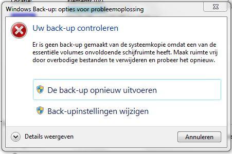 Beste Clarkie, Van de foutmelding stuur ik je bijgaand 2 printscreens. Verder merk ik op dat het programma Norton360 er geen probleem mee heeft om op dezelfde externe harde schijf een back-up te maken. Alleen voor zover ik het kan overzien maakt Norton alleen een back-up van de bestanden en niet van het systeem. Kun je me zeggen of één of meer van de door jou genoemde back-up programma's ook een kopie maakt van het systeem?