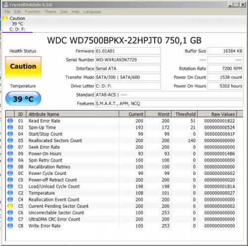 gehackt via adobe flash player?louis14 reageerde op louis14's topic in Archief Bestrijding malware & virussen Hier is de afbeelding van cristaldiskinfo.Ik heb het gemaakt met mijn eigen knipprogramma. Ik heb waarschijnlijk 2 bad sectors.