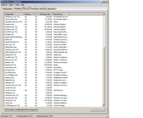 Ik heb een scan gedaan van mijn laptop met mijn Kasperky anti virus.Er zijn geen bedreigingen ontdekt. Daarna heb ik nog eens gecheckt hoe het zat met mijn herstelpunt en wat blijkt: mijn 4 herstelpunten zijn verdwenen! Ik heb geen herstelpunten meer. Ik wou de ingestelde max schijfruimte voor herstelpunten nog eens nagaan en zag dan dat herstelpunten uitgeshakeld was.De max schijfruimte stond op 0. Infeite is de situatie nog verslecht:nu zijn niet alleen herstelpunten verdwenen maar is herstelpunten ook uitgeschakeld. Ik kan moeilijk geloven dat dat door mijn scan is. Voorlopig zag het er nochtans goed uit. Ik weet niet of je hier iets kan mee doen maar ik heb 2 printscreens van de processen van taakbeheer toegevoegd.