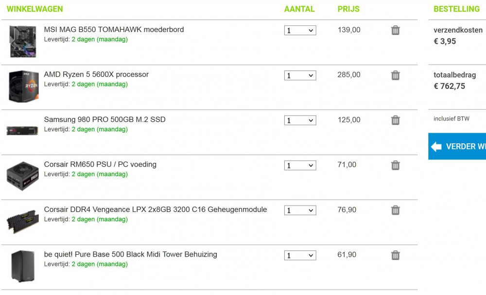 Hallo, allemaal. Ik zou graag wat advies of bevestiging hebben voor het samenstellen van een PC. Ik rommel al een tijdje wat aan in mijn PC's en dacht dat mij dit wel ook lukken moest. Ik heb de onderdelen bij elkaar gezocht bij Megekko.nl en wou graag weten als het de juisten zijn, gaat het optimaal werken ? Wat ik mij het meeste afvraag is of alle kabels wel meegeleverd worden en of het motherboard wel gaat passen in de gekozen behuizing ? Extra ssd kaarten en een grafische kaart heb ik nog liggen, die komen er later ook nog in. Het betreft een Radeon RX 570. Ik neem aan dat in totaal een 600 watt voeding voldoende zal zijn. Albert