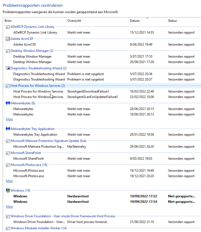 Computer valt elke keer 1x uit, daarna werkt hij perfect.SvenVDB1 reageerde op SvenVDB1's topic in Archief Hardware algemeen En waar moet ik die logboeken vinden? Malware = malwarebytes Virussen = Windows Defender