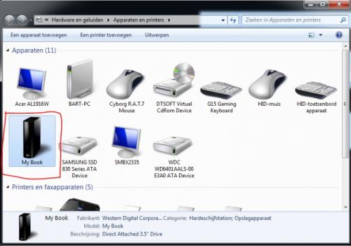 1. Beste, Het gaat over de WD My book essential 1130 usb 3.0 . Ik heb hem een lange tijd niet nodig gehad, totdat ik gisteren iets nodig had en de hd niet meer kon openen op mijn pc. Ik een andere usb poort geprobeerd, het bekende pling geluid wanneer er een usb apparaat wordt aangesloten. Na wachten en wachten nog steeds niks, andere computer, weer het pling geluid maar nog steeds geen hd te zien. Tot vanmiddag deed hij het opeens weer, kon er mee werken en alles stond er op. Uit het niets viel hij weer uit en kon er weer niks mee. Na weer andere usb poorten geprobeerd te hebben, computer aan/uit hd aan/uit geen resultaat. Het lukt gewoon niet om in de hd te komen. Alle stuurprogramma's opnieuw geinstalleert, de schijf wordt ook herkend in het apparaatbeheer en als usb station (zie afbeeldingen) Al met al, de hd kan niet worden geopend via "deze computer", alleen als usb appraat en in het apparaatbeheer wordt hij wel herkend. Iemand enig idee? Mvg, Bart