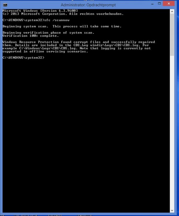 Ik heb de resultaten + CBS.log voor alle zekerheid toegevoegd. Hij zou dit normaal hersteld moeten hebben. Aldus het command prompt venster. Resultaat: CBS.log- 74 antwoorden
