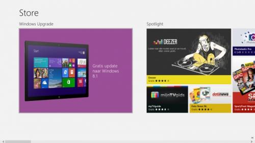 2. Ik weet zeker dat het Windows 8 is, hoor. Ik begrijp dat er soms wat domme vragen gesteld kunnen worden, maar zo dom ben ik niet, hoor. Maar zoals ik al zei: In de Windows Store staat er wel dat ik naar Windows 8.1 kan upgraden, maar er gebeurt gewoon niets als ik er op klik (zie screenshot hieronder). Daar heb ik even op zitten zoeken, maar deze tips zijn er voor als er in Windows Store geen melding staat, maar er staat er wel degelijk één. Maar ik heb ze toch even geprobeerd en ze werkten niet... Heb intussen al vele malen heropgestart, zonder resultaat. Maar, wie weet.. Alstublieft. Als ik er dus op klik wordt hij wel ingedrukt (3d-animatie of dergelijke), maar er gebeurt helemaal niets. En het is niet dat hij vast hangt of dergelijke. EDIT: En o ja, ik ga nu even Speccy proberen. EDIT: Alstublieft... http://speccy.piriform.com/results/6xa4JHD8Q0PXZPktdZXRC7C