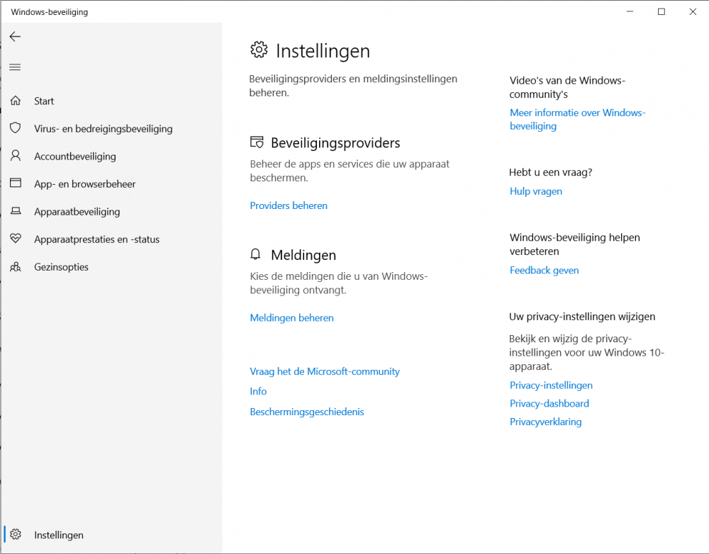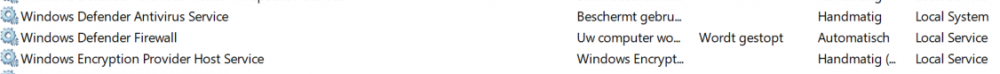 Het probleem met Norton lijkt voorlopig opgelost te zijn, na herinstallatie staat de firewall nu standaard aan. Wat betreft de windows defender zie ik bij virus- en bedreigingsbeveiliging geen instelling staan om realtime-beveiliging uit- of in te schakelen. Bij opstart zie ik wel nog telkens deze 2 meldingen verschijnen. Er gebeurt niets wanneer ik op deze meldingen klik Als ik in de services lijst kijk zie ik ook dat bij "Windows defender firewall" ofwel wordt gestopt ofwel wordt gestart staat (en dus niet de status "wordt uitgevoerd") Het probleem met Excel en Word is overigens ook nog niet opgelost. -