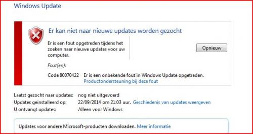 Beste, Alles uitgevoerd wat er op bovenstaande "Microsoft Windows Help" stond maar nog steeds kan ik de updates van Vista niet binnenhalen. Wat mij ook is opgevallen moet ik nu bij het opstarten steeds op de F1 toets drukken. Hoe geraak ik daar vanaf? Grt. Linda