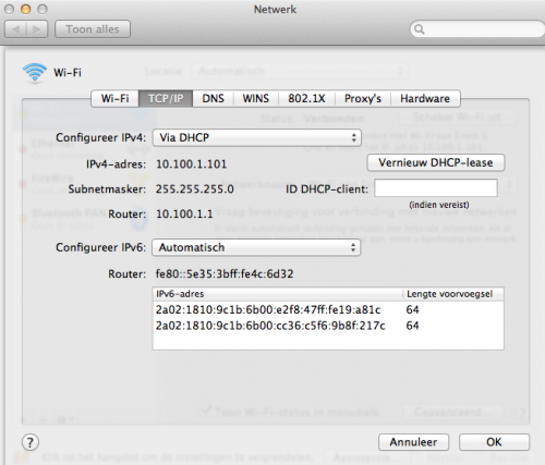 1. Beste Ik zit hier thuis met een probleem waar ik niet aan uit kom. De situatie thuis zit zo: We hebben een telenet modem/router waaraan rechtstreeks de digibox hangt. Vanhieruit gaat een kabel naar een switch van waaruit het verdeelt wordt naar een router/wap op de bovenverdieping en een router/wap naar buiten (de tuin) zodat we overal een dekking van wifi hebben. Nu doet er zich plots een conflict voor binnen dit systeem. Van zodra ik de router/wap van buiten aansluit op de switch krijgen alle apparaten die op het wifi-netwerk zitten een foutief IP adres: namelijk het IP adres van een router, lees: 10.100.1.101.(zie afbeelding) Alle laptops (zowel Windows als mac), gsm's, playstation, digicorder enzovoort krijgen een foutief IP adres. Als ik de buiten router afkoppel en de telenet modem reset werkt alles terug normaal, tot ik hem terug aankoppel. De instelling van de router staan normaal goed ingesteld en ik heb hier al veel mee geëxperimenteerd om het probleem op te lossen. Is iemand dit probleem al eens tegengekomen? Of weet iemand waar het aan zou kunnen liggen? Mvg, Timothy.