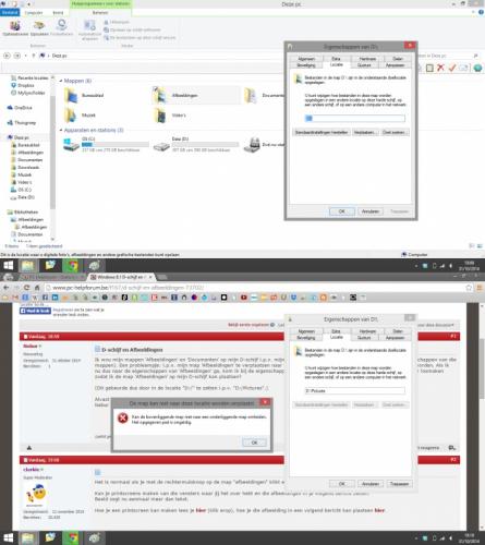 3. Bovenste scherm is dus het scherm als ik op eigenschappen van afbeeldingen klik. Onderste is als ik het probeer op mijn D-schijf te plaatsen (maar mijn pc zegt dat dat dus niet op kan omdat ik mijn D-schijf op mijn D-schijf wil zetten (terwijl ik enkel de plaats waar mijn afbeeldingen opgeslagen worden naar daar wil verplaatsen). Als ik de D-schijf open krijg ik dus hetzelfde als ik mijn map 'Afbeeldingen' open. Ik wil die dus 'ontkoppelen'.