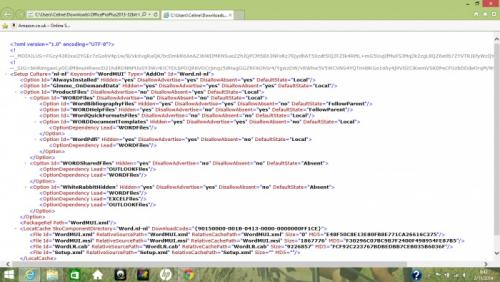 4. Ik downloadde een Microsoft Office-pakket voor studenten recent via de site van Academicdownload. De bestanden staan ondertussen wel op mijn computer, maar de installatie wil niet starten. Wanneer ik, zoals de instructies mij vertellen, op 'setup' klik, wordt er een tabblad geopend met een lijst codes. De installatie blijft echter uit. Wat kan ik hier aan doen? Ik voeg een afbeelding bij met de codes, zo wordt het probleem misschien duidelijker.