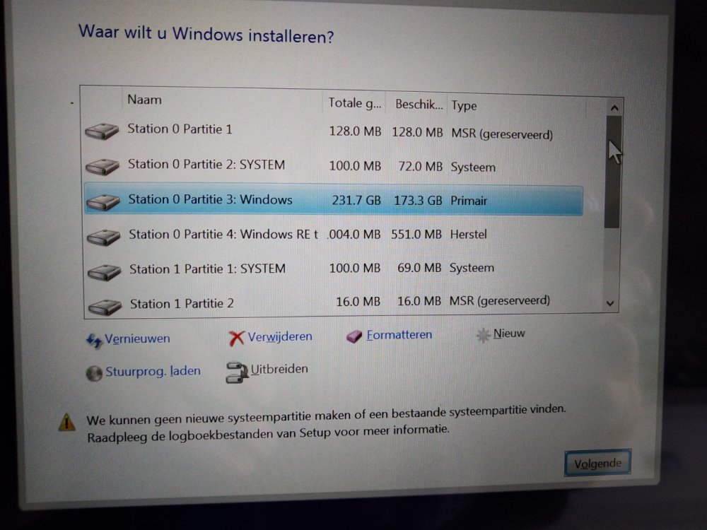 Overstappen van Windows 10 S naar Windows 10 Pro zonder StoreSTYLUS3530 reageerde op STYLUS3530's topic in Archief Windows 10 Hello Folks Eerst en vooral mijn excuses, maar omwille van persoonlijke redenen ben ik er nu pas aan toegekomen om Windows 10 Pro te installeren. De netbook op dewelke ik het wou installeren is een Medion MD62450, deze beschikt normaal over een interne HD(flashgeheugen) van 64GB, ik heb er echter een M2 SSD van 250 GB ingestoken, op deze wil ik ook dat Windows 10 Pro geïnstalleerd word. Ik kies de optie "Aangepast: alleen Windows installeren(geavanceerd)" Er word me gevraagd op welk station ik wil installeren, ik kies voor: "Station 0 Partitie 3: Windows 231.7 GB 173.3 GB Primair"(zie foto) Ik krijg echter de foutmelding: "We kunnen geen nieuwe systeempartitie maken of een bestaande systeempartitie vinden. Raadpleeg ...." En de installatie gaat niet verder. Wie kan er zeggen wat ik verkeerd doe? Alvast bedankt STYLUS
