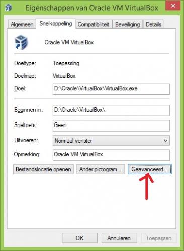 15. U bedoelt toch aanpassen en dus Volledig Beheer geven aan de gebruiksaccount? Nee, op de eigenschappen van de programma zelf. Dus met rechtermuisknop op snelkoppeling en dan verder doen zoals in bericht 2 is vermeld. Je kan eveneens met de rechtermuisknop op eigenschappen van snelkoppeling en dan tab snelkoppeling en daar geavanceerd klikken en dan aanvinken: als administrator uitvoeren.