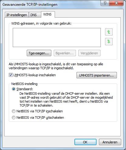 Ga naar netwerkcentrum Klik op adapterinstelling wijzigen Klik op draadloos Klik op TCP/IPv4 en dan eigenschappen. KLik geavanceerd Klik op Tab Wins Daar moet je op standaard aanvinken.