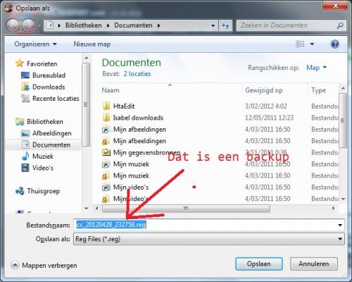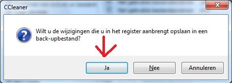 21. Je moet niet bang zijn. Klik zo: Dan hebt je de mogelijkheid om een abckup te maken van de verwijderde register. Moest er ondanks alles toch mislopen en dan kan cc_20120428_232934.reg op klikken om alles terug te zetten. Maar als je de register niet reinigt dan zal uw computer trager worden.