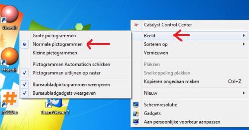 Wat ik bedoeld is dit: Als de computer is opgestart dan ziet je bureelblad en dat is desktop Dan met de rechtermuisknop op desktop en dan met de rechtermuisknop ook Beeld-->normale pictrogram aangevinkt
