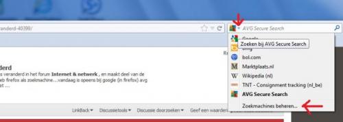 21. Klik op EXTRA en dan ADD-ons en dan klik je daar op extenties en dan kan je AVG uitschakelen. Dan in de browser nog eens op x klikken om de toolbar te verwijderen. De zoekmachine zelf: Klik rechts op AVG secure search en klik op pijltje en dan zoekmachine beheren Klik daar op AVG en dan verwijderen Standaard wordt dan Google in de plaats gezet maar je kan een ander omhoog stellen.
