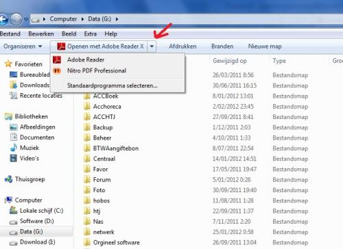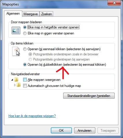 17. Voor het dubbelklikken zelf dient je naar configuratiescherm / mapoptie te gaan. Met welk programma je wilt starten kan je aangeven in configuratiescherm / standaardprogramma Je hebt dan twee mogelijkheden: Uw standaardprogramma's instellen Hier kan je een programma standaard in stellen door op de programma te klikken en dan als standaard instellen. Een bestandtype of protocol aan een programma koppelen Je kan bijvoorbeeld docx koppelen aan Word Maar je kan ook op Computer klikken en dan zoals onderstaande doen: