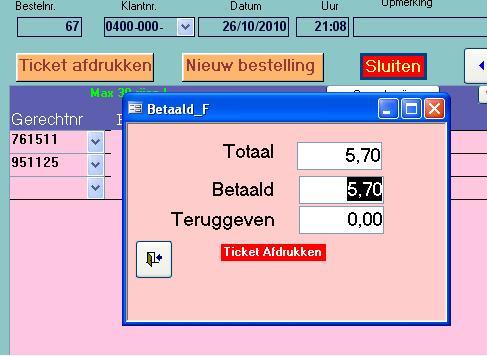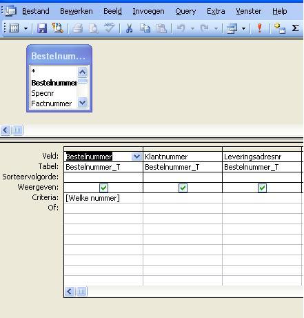Je moet maar een keer doen. Of je nu 1 factuur moet maken of miljoen dat maakt niks uit. Bij de eerste geval moet je handmatig de factuurnummer opgeven wat soms handig kan zijn. Bijvoorbeeld: Een klant vraagt om factuur die hij niet kreeg te verzenden. In dat geval is het handig op factuurnr 485 in te geven zodat die factuur wordt afgedrukt en niet de laatste factuur. Zo kan je bijvoorbeeld alle facturen op datum afdrukken i.p.v. factuurnummer geven. In dat geval geeft je in cretaria dit: [welke datum wenst je af te drukken?] In de tweede geval moet je factuurnummer niet ingeven want dat doet de computer. Ik zal iets vergelijkbaar geven zoals tweede geval met voorbeeld. Hier is de tweede formulier gekoppelt aan de bestelnummer. Zodra in dit geval het bedrag betaald is ingevuld kan je op ticket afdrukken klikken en wordt bon 68 afgedrukt. Dus de computer weet dankzij de query dat hij bon 68 moet afdrukken. Stel dat ik dan op bon 65 terug gaat dan zal de computer bon 65 afdrukken. -