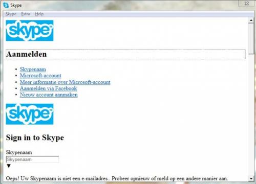 ik had een oudere versie van Skype, maar deze werkte niet meer. Heb nu de nieuwste versie en het werkt nog steeds niet. Dit is hoe mijn scherm er uitziet bij het opstarten: ik hoop echt dat iemand dit kan oplossen, heb al vanalles geprobeerd. Alvast bedankt!