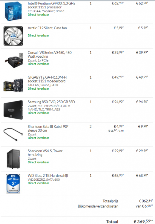Hoi, Ik ben wil een PC bouwen voor een vriend en ik vroeg mij af of ik iets over het hoofd zie. De PC zou gebruikt worden voor youtube, word, facebook, etc.. Deze topic is vooral om te weten of ik iets over het hoofd zie. Ik heb nog een optische drive Dit is de lijst op alternate Mvg Osiris