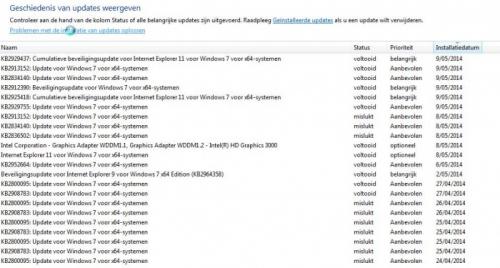 Za 10/5/2014 10.11 Ik vond in het laatste bericht geen antwoordknop voor reactie te sturen en diende opnieuw in te loggen. Bij deze dien ik te melden dat ik de stap genomen heb om toch de update naar EXPLORER 11 te doen en blijkbaar is deze gelukt want de configuratie ging voor 100% ok. Een nieuwe browser werd gegeven en een aangepast scherm : Google kan ik niet als startpagina zetten en ik heb het reeds verschillende keren via EXTRA enz... gewijzigd maar telkens keert die DEFAULT SEARCH terug Zie bijlage. Ik heb ook het laatste rapport van UP-DATE geschiedenis bijgevoegd. Ter inzage en controle. -