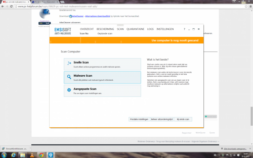 4. Hallo! De eerste stappen met adwcleaner zijn gelukt. bestand in bijlage. De emsisoft anti-malware is niet gelukt. Ik krijg de optie van 'volledige scan' niet, alleen die andere 3 opties. heb prt scr gemaakt. Bij de installatieprocedure zijn er alleen 3 stappen. de 3e stap 'scan computer' zoals in de link is ook niet aangegeven. als ik vervolgens op voltooien klik, krijg ik bij scan alleen de 3 andere opties en niet de volledige scan. Ik weet niet of ik iets verkeerd heb gedaan, of moet ik een andere scan kiezen? Groeten, Isa AdwCleanerS1.txt