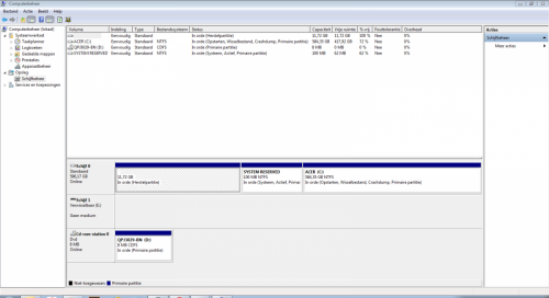 Hoi, Ik wil mijn harde schijf (596.17gb) opsplitsen in 2 gelijke delen. 1st belangrijkste vraag: kan dit zonder gegevensverlies? 2de: hoe? computerbeheer zegt: De harde schijf heeft reeds partities: herstelpartitie: 11.72 gb system reserved: 100mb c: 584.35gb de c: wil ik opsplitsen: als ik in computerbeheer rechtermuisknopklik op c: en dan volume verkleinen: zou ik slechts 266mb beschikbaar hebben om te verkleinen terwijl er van de c: maar 166gb in gebruik zijn (dus 417b vrij) weet iemand raad?