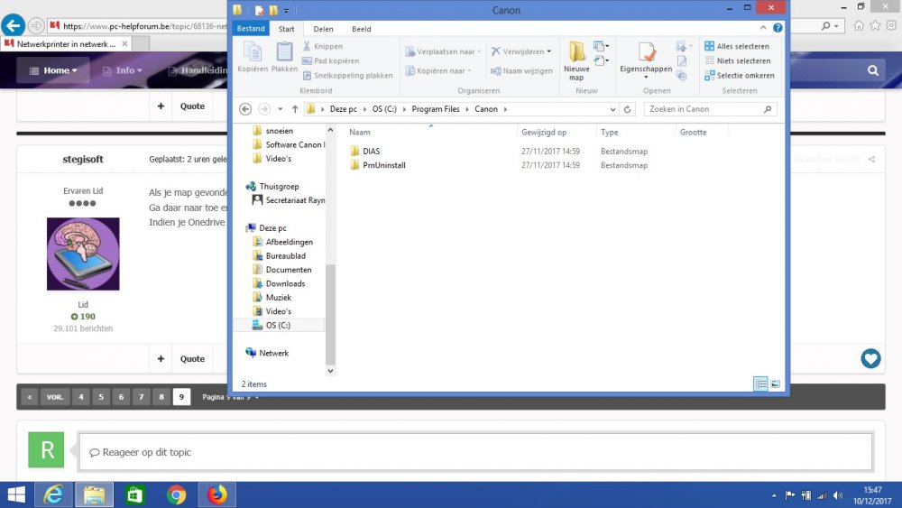 Ik kan alleen een canon map vinden in c:\Program Files... Wanneer ik deze map klik krijg ik hetgeen te zien wat je hierboven ziet... nl. 'DIAS' en 'PmUninstall'