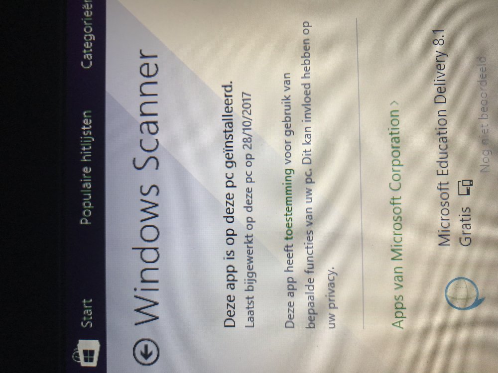 Ook de app blijkt reeds geïnstalleerd want ik krijg de melding "de app is op deze pc geïnstalleerd". Wanneer ik op de app klik krijg ik de melding sluit scanneer aan om te kunnen scannen. Ik kan dus nog steeds niet scannen...