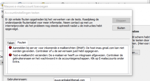 geeft als foutcode aan dat mijn inlognaam cq wachtwoord niet juist is maar dat is wel zo, ik kan gewoon inloggen bij mn gmail account
