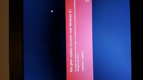 Mijn laptop gaf aan dat ik Windows 8.1 kon installeren. Hij is het hele process door lopen, maar aan het eind van de rit kreeg ik de melding dat 8.1 niet geinstalleerd kon worden. Zie foto. Hoe krijg ik Windows 8.1 nu wel geinstalleerd?