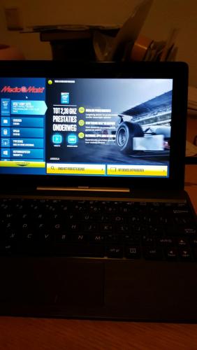 Hallo, Ik heb met een verloting een Asus notebook gewonnen. Dit is tevens een tablet, want je kunt hem loskoppelen van het toetsenbord. Waarschijnlijk gaat het om een showroommodel, want hij geeft op het bureaublad informatie weer over de mediamarkt. Zie bijlage. Weet iemand hoe ik dit kan verwijderen of uitzetten -