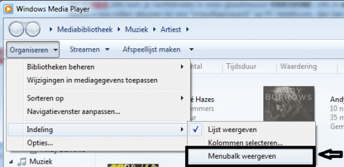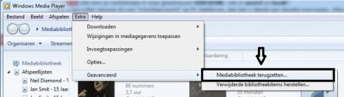 7. We hebben het allemaal al wel eens,je verwijderd fysiek een cd op je PC maar er blijft wel een verwijzing achter in de Mediabibliotheek van Windows Media Player en die krijg je er dan niet meer uit. Geen enkel probleem want je kunt de Mediabibliotheek ook gewoon resetten dit door volgende uit te voeren. Allereerst moet je zorgen dat de menubalk tevoorschijn komt moest deze er nog niet staan.. Klik op Organiseren - Indeling - Menubalk weergeven . Als je dat hebt uitgevoerd dan klik je op Extra - Geavanceerd - Mediabibliotheek terugzetten en bevestig dan door op Ok te klikken. WMP word nu afgesloten en de eerstvolgende keer dat je WMP opstart zal de Bibliotheek opnieuw worden aangemaakt.;-)