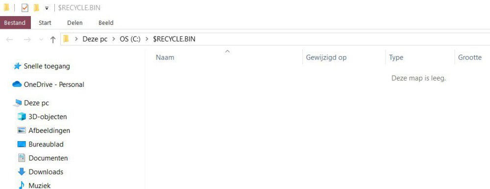Daar ben ik het mee eens. Ik heb misschien een lichtpuntje gevonden: Als ik in Verkenner op 'snelle toegang' klik en dan in het zoekvakje 'prullenbak' tik, dan vindt de computer niets. ECHTER, indien ik het woord 'Prullenbak' tijp op de plaats 'Snelle toegang' (dus overschrijf), dan geeft de computer alle documenten die in de prullenbal zitten!! Dus die prullenbak zit ergens!! Maar Waar? Zoeken in 'Pc' of 'OS C:' levert niets op.