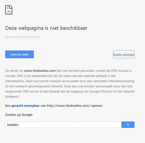 Dag kweezie wabbit, allereerst een heel gelukkig en vredevol nieuwjaar toegewenst, voor jou en je geliefden, voor alle medewerkers van pc helpforum en voor alle leden ervan. Wat het probleem van de internetpagina's betreft, de memory test doe ik vanavond. Ik kan blijkbaar alleen maar de Wikipaginas laden. Alle andere paginas geven onderstaand resultaat. Het lijkt mij dat het iets met het dns fout gaat. Ik hoor het graag, dank alvast voor alle hulp. Impala.