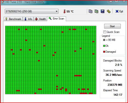 Bedankt voor je antwoord. Ik ben nu aan het scannen met HD tune. Voorlopig zijn er al enkele damage blocks gevonden. Wat moet ik doen als de scan klaar is?