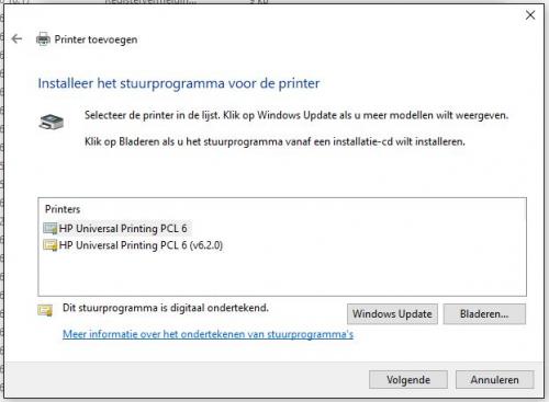 7. Hallo, Bij een grote update van Windows 10 vorig jaar was het niet meer mogelijk om mijn HP Laserjet P2055d-printer te installeren met de originele software. HP voorziet echter een andere driver; dankzij Clarkie kon ik die dan installeren en mijn printer opnieuw aan de praat krijgen. Zie Maar nu heb ik een nieuwe grote update gekregen en tot mijn ergernis functioneert de printer nu alweer niet meer. Ik paste dus de update van vorig jaar toe, maar daarin loop ik vast. De procedure was: 1) De printer uitschakelen; de USB-kabel verwijderen. 2) Bestaande printers en software verwijderen (lukt). 3) De computer opschonen met CCleaner ('Cleaner' en 'Register') (lukt). 4) De meest recente printerdriver downloaden (lukt). 5) Daarna loopt het mis wanneer ik die driver wil installeren: - 'Installatiemodus': kiezen voor 'Traditionele modus' (lukt). - 'Printer zoeken via andere opties': 'Een lokale printer of een netwerkprinter toevoegen met handmatige instellingen' (lukt). - 'Selecteer een printerpoort': kiezen voor 'USB001 (Virtuele printerpoort voor USB'): hier loopt het mis. Als ik kijk in de lijst met bestaande printerpoorten, staat er geen USB-poort tussen. Ik heb nochtans meerdere USB-aansluitingen. Hoe zou ik dit kunnen oplossen? Alvast bedankt en beste groeten, jd027