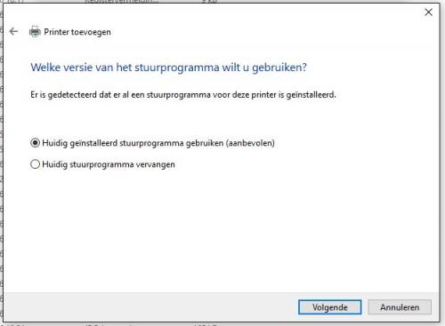 23. Dag Clarkie, Fantastisch: dit is het! Ik heb alle stappen nauwgezet uitgevoerd en nu werkt mijn printer opnieuw! CCleaner moest driemaal doorheen het register om alle fouten te corrigeren. Tijdens het installatieproces van de driver wel enkele eigenaardigheden: 1) Helemaal in het begin (bij het verwijderen van de HP-software) was er bij 'Programma's en onderdelen' helemaal niets van HP te vinden. Bij 'Apparaten en printers' kon ik wel de HP-printer verwijderen. 2) Toen ik tijdens de installatie een printer moest selecteren, had ik twee keuzes (zie hieronder). Heb gekozen voor de bovenste optie. 3) Één stap verder werd mij gevraagd naar de versie van het stuurprogramma die ik wilde gebruiken. Er werd aangegeven om het 'huidig geïnstalleerd programma' te gebruiken (nochtans had ik alles vooraf gedeïnstalleerd). Omdat het toch de bedoeling leek te zijn om een nieuw (werkend) stuurprogramma te installeren, heb ik gekozen voor 'Huidig stuurprogramma vervangen' (dus de andere optie dan wat op het screenshot hieronder is aangevinkt). Maar goed: nadien bleek alles toch weer te werken, en dat is het voornaamste. Nog eens heel hartelijk bedankt voor al je moeite - dit is echt een forum om te onthouden! Duimen nu dat alles ook blijft functioneren. Ik ga alvast de hele procedure in een bestand opnemen, voor het geval ik ze nog eens moet herhalen. Vriendelijke groeten, jd027
