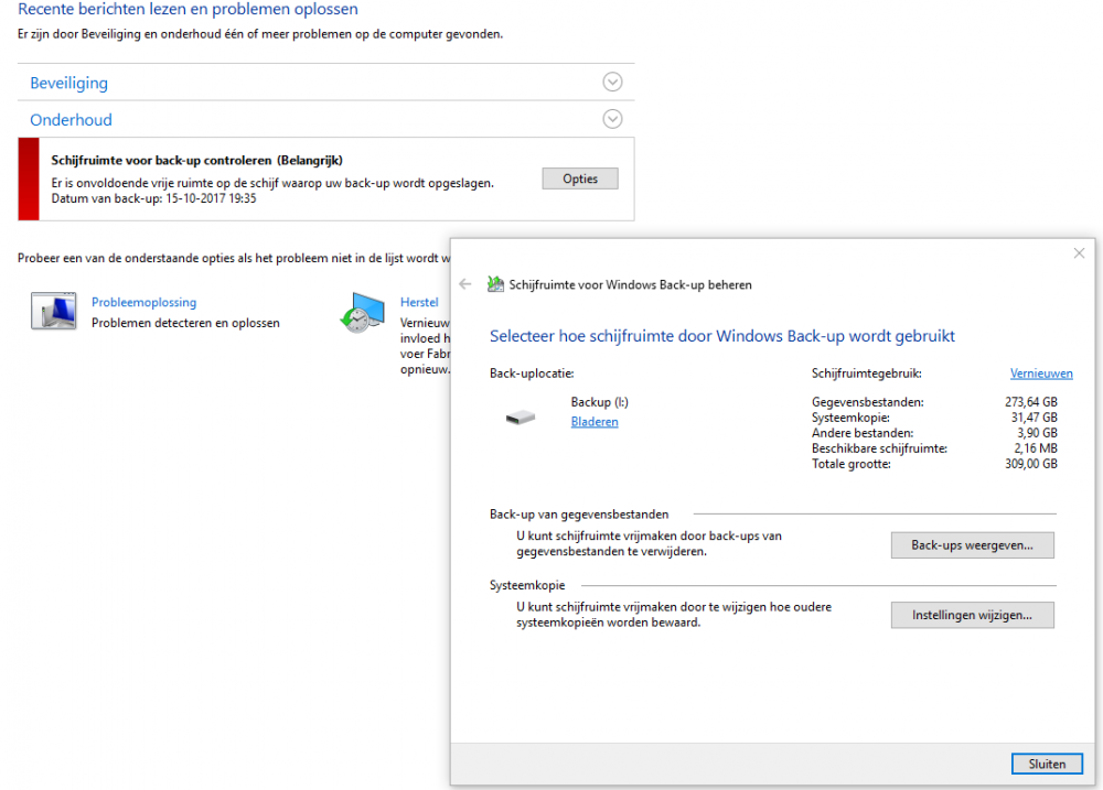 als je naar de tweede knipsel kijkt zie je 0 bytes en omdat het systeem dit steeds aangaf heeft Rd computers toen EaseUs Partition Master 12.0 geïnstalleerd en volgens mij daarmee de I back-up ontlast. Ik denk dat het eenmaal per maand zou moeten hij heeft het nog geen week gelden gedaan denk en anders twee weken geleden -
