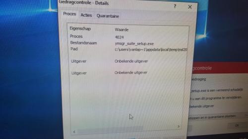 Na het versturen van het laatste bericht met bijlage heb ik de PC opnieuw willen opstarten om te zien of dat plaatje wegging. Echter toen ik net om 18.50 uur naar de pc kwam was het nog steeds in opnieuw opstarten(uren!)....het is daarin blijven hangen wat nooit eerder gebeurt is. Ik heb de pc uitgeschakeld en opnieuw ingeschakeld. Ook de pop-up is weer te zien. Maar raar dat de pc ook niet opnieuw was opgestart en erin bleef hangen.