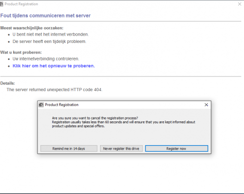 Neen ik had geen externe harde schijf aangesloten op het moment van opstarten. Ik heb ook op Never register this drive geklikt. ook mijn dank aan de tipgever.