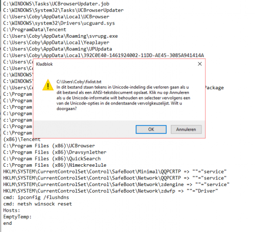 Gelukt, bijgaand de log file Groet Coby Fixlog.txt -