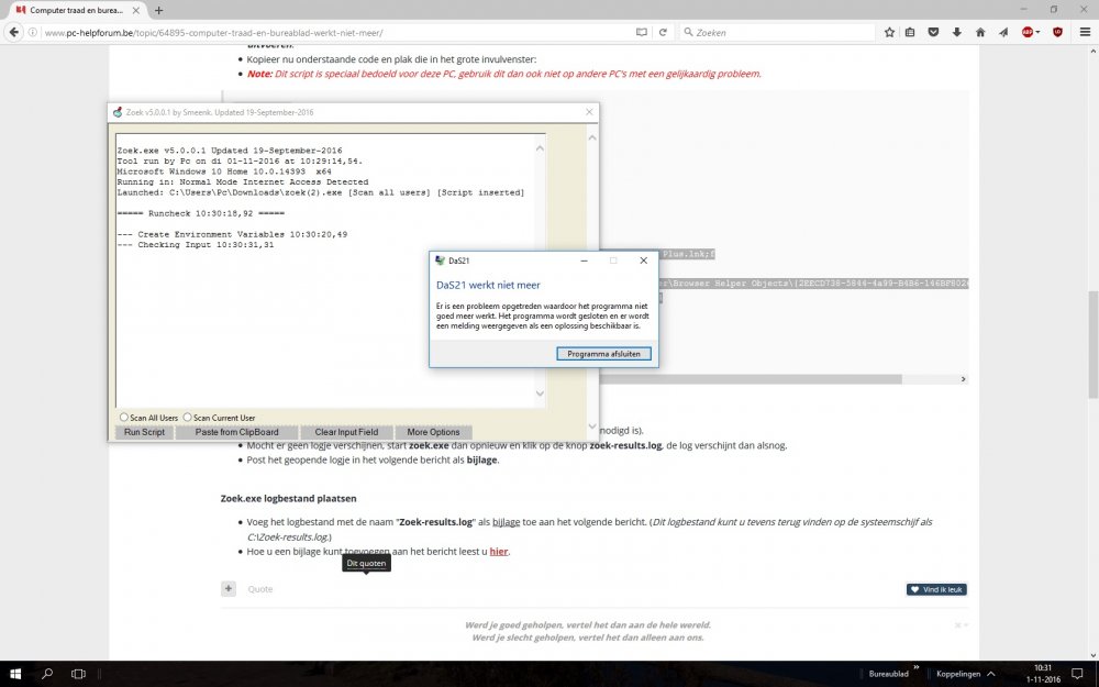 Hallo Kweezie, Jazeker. Het bureaublad is weer zoals eerder. Alles werkt weer en de taakbalken zijn ook weer terug. Ik durf nog niet zo te zeggen of de computer echt sneller is geworden. Maar denk het wel. Heb namelijk nog niet gehad dat lang moet laden bij websites of het opstarten langzaam gaat. Alvast heel erg bedankt voor de tijd en moeite! Nog advies om het sneller/schoner te krijgen/houden ? Groetjes, Nick -